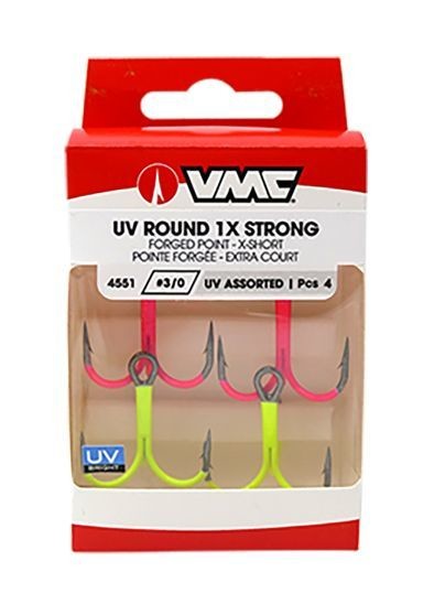 Le célèbre hameçon triple utilisé sur les leurres Rapala depuis des décennies est maintenant disponible en version UV. | Pointe VMC® Pyramide pour une pénétration optimale. | Renforcement 1X, parfait pour la traque des carnassiers.